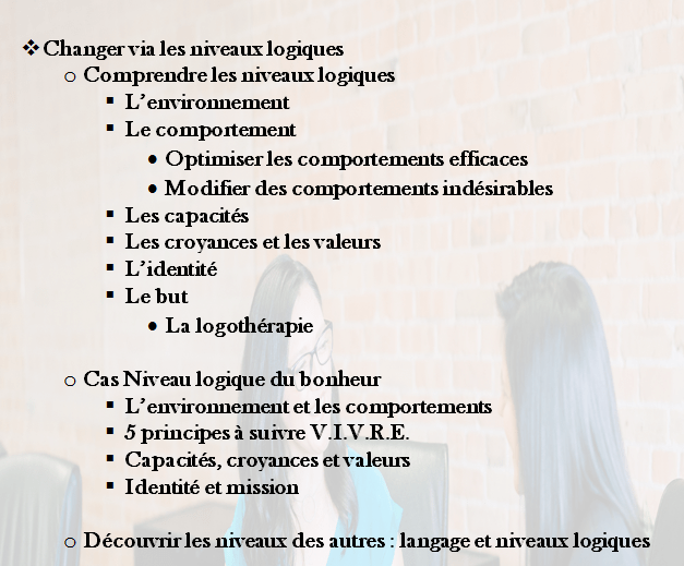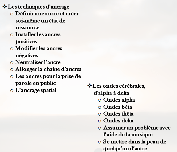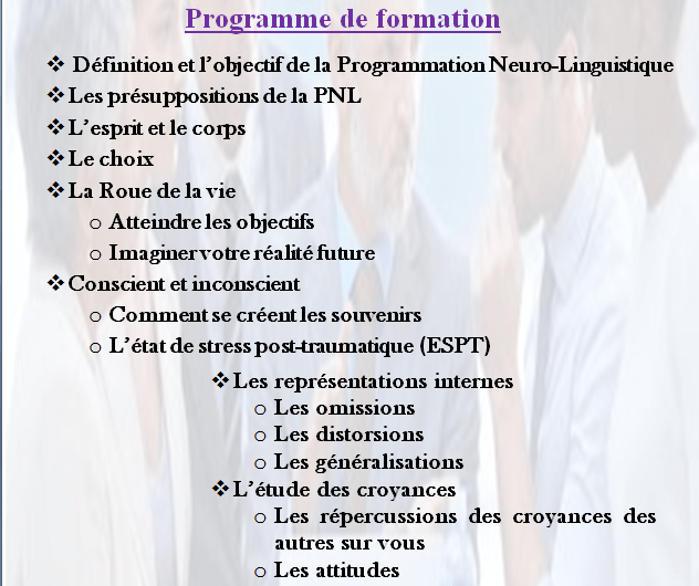 - Apprendre les piliers de la Programmation neuro-linguistique.